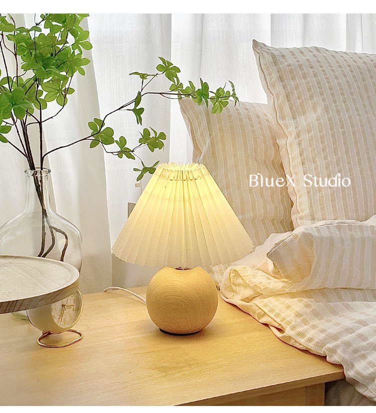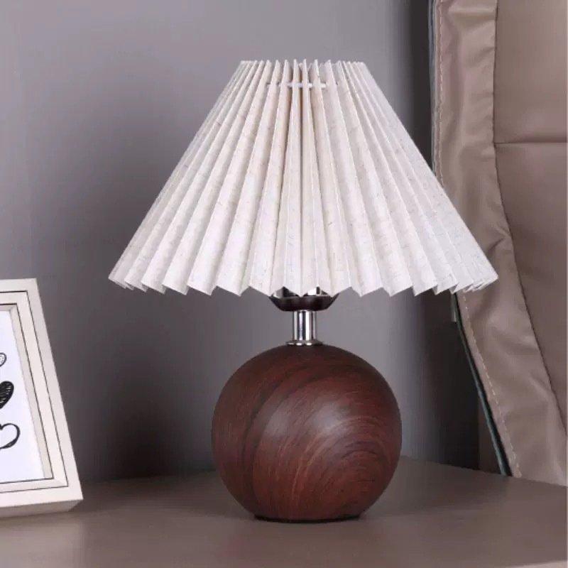 Walnut wood grain (linen cover) ,Like wood grain (apricot shade) ,A light bulb |
